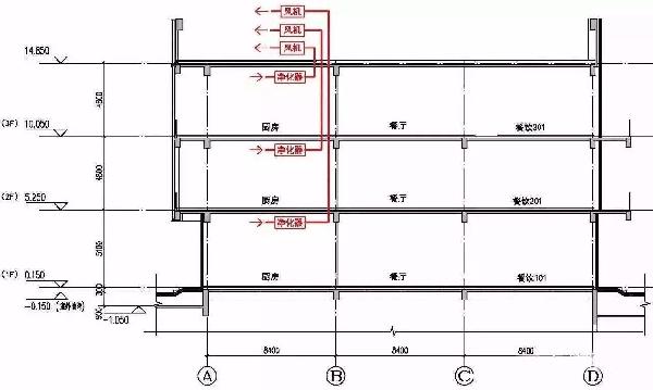 機房、風(fēng)機及風(fēng)管的布置廚房的排風(fēng)機宜設(shè)在廚房的上部,廚房為公共建筑中的一部分時,其排風(fēng)機宜設(shè)在屋頂層,這可以使風(fēng)道內(nèi)處于負(fù)壓狀態(tài),避免氣味外溢。