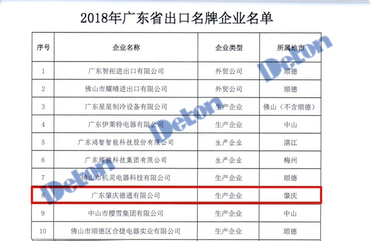 喜訊!德通再獲廣東省出口名牌企業(yè)